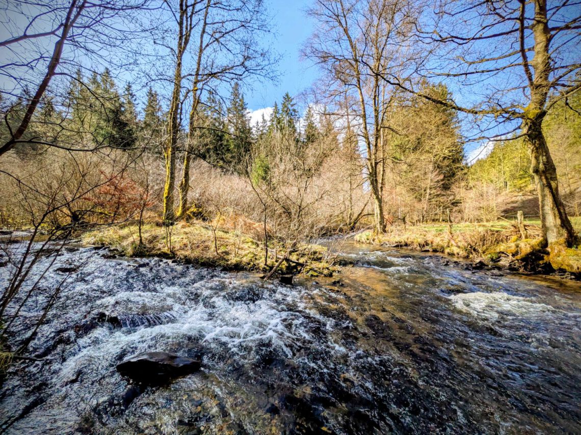 März 29, 2026Unterwegs in der Nordeifel. Wandern durch das Naturschutzgebiet Perlenbach-/Fuhrtsbachtal im Nationalpark-Eifel (bei Monschau-Höfen, Städteregion Aachen, Nordrhein-Westfalen). Art der Wanderung ? Rundwanderung Start / Ziel ? Parkplatz Am Nationalpark Tor Höfen, Hauptstraße, 52156 Monschau Distanz ? 11,8 Kilometer Ausgeschilderte Wanderung ? Wanderung aufgezeichnet ? Ja 👍 mit Komoot. Meine Anreise ? Mit dem Pkw – von Aachen (in ca. 40 Minuten) über die A44 bis Ausfahrt 2 Aachen-Lichtenbusch. Dann auf die B258. Roetgen > Imgenbroich > Monschau > Höfen > Parkplatz Am Nationalparktor Highlights Fotoimpressionen der Wanderung k