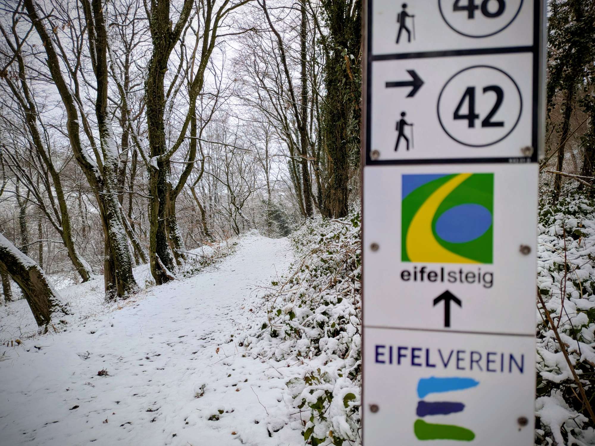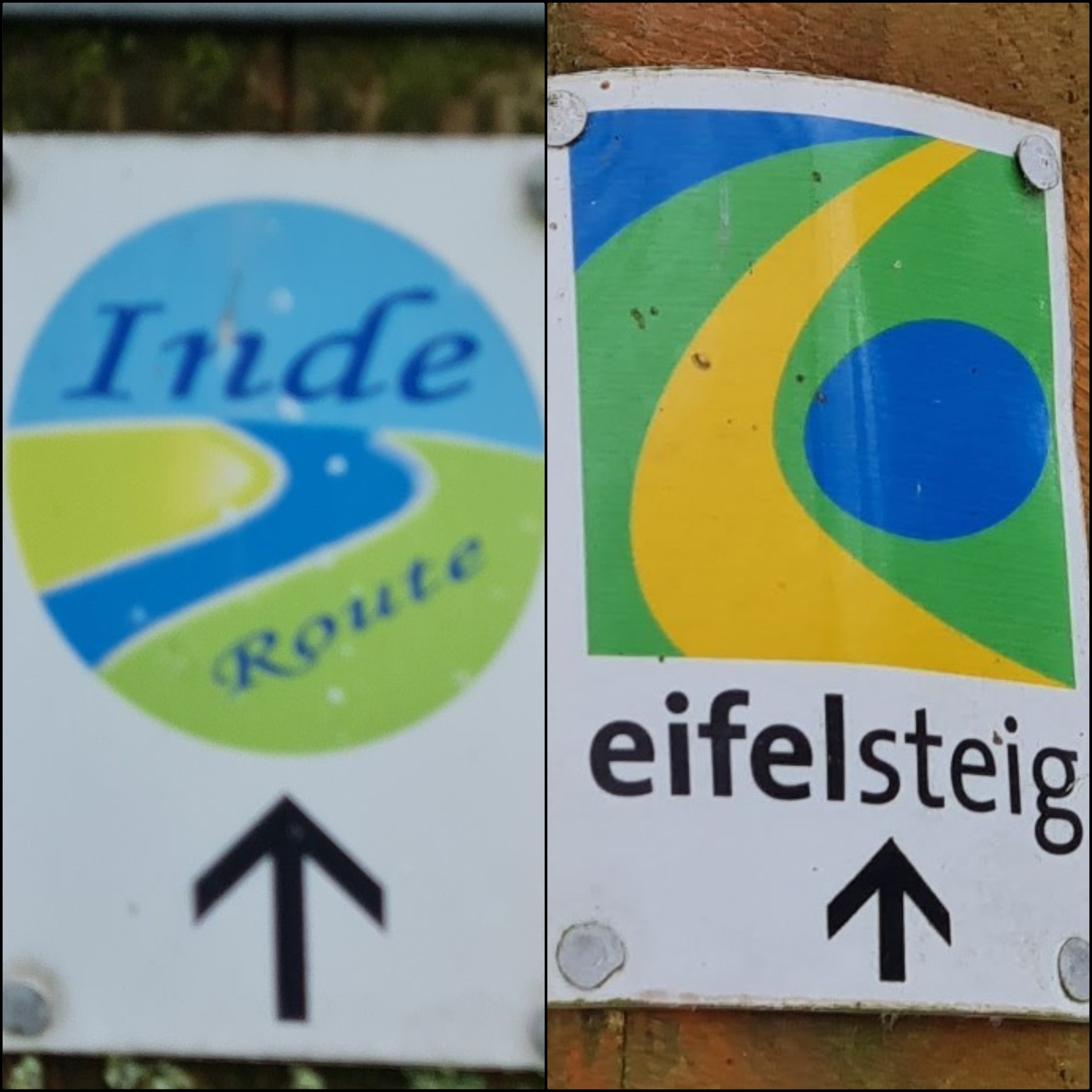 Jein ! Von Aachen-Brand bis Kornelimünster teilweise mit „blau/grünem“ Logo der IndeRoute. Ab Kornelimünster ist der Weg ist durchgängig mit “blau/gelb/grünem“ EifelSteig Logo ausgeschildert 👍